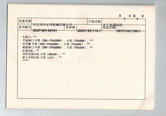 水工金屬結(jié)構(gòu)證書